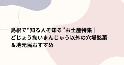 旅行はじめに 島根のお土産といえば、ユーモラスな顔の「どじょう掬いまんじゅう」が有名ですが、実は島根(特に松江)は京都・金沢と並ぶ「日本三大菓子処」のひとつ。地元民が日常的に愛し、大切な人への贈り物に選ぶ「本当に美味しい穴場...