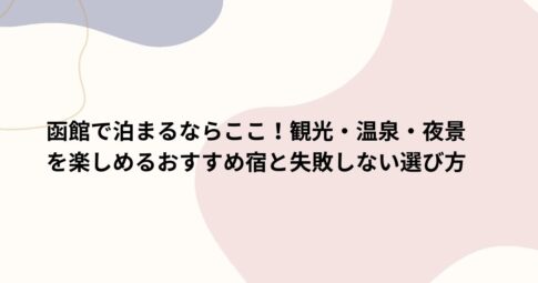 観光はじめに 異国情緒あふれる街並み、世界三大夜景に数えられる絶景、そして新鮮な海の幸。函館は、一度の旅行では味わい尽くせない魅力が詰まった街です。 旅の満足度を左右する宿選びですが、函館は「駅前」「ベイエリア」「湯の川温泉...