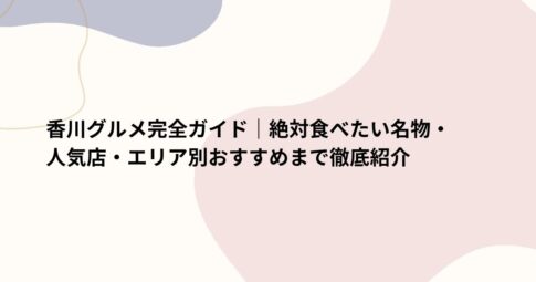 観光はじめに 「うどん県」の愛称で親しまれる香川県。しかし、香川の魅力はうどんだけにとどまりません。瀬戸内海の海の幸や、パンチの効いた肉料理、特産のオリーブを使ったブランド食材など、多彩なグルメがひしめき合っています。 本記...