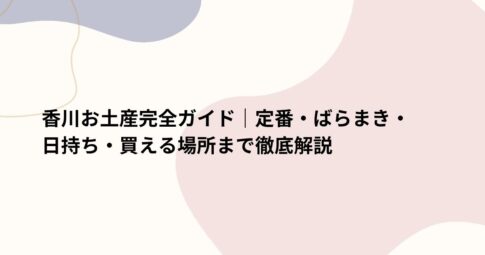 香川お土産完全ガイド|定番・ばらまき・日持ち・買える場所まで徹底解説