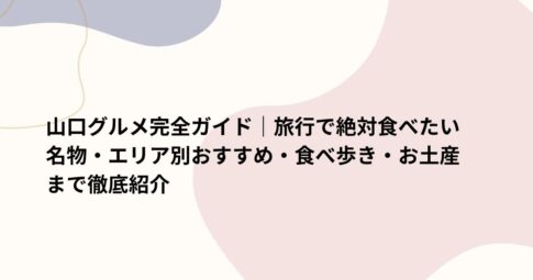 観光はじめに 「西の京」と呼ばれる山口県は、三方を海に囲まれ、豊かな自然の中で育まれた独自の食文化が息づくグルメの宝庫です。 今回は、2026年最新の情報を踏まえ、山口旅行で絶対に外せない名物から、効率よく美味しいものに出会...