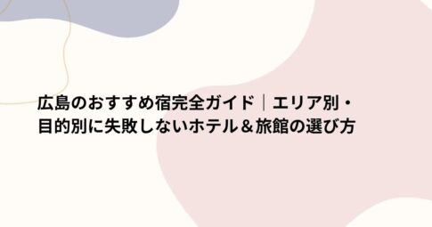 広島のおすすめ宿完全ガイド|エリア別・目的別に失敗しないホテル&旅館の選び方