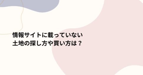 不動産はじめに 情報サイトに載っていない土地の探し方や買い方についてご紹介します。 理想の土地を見つけたいけれど、情報サイトでは希望に合う物件がなかなか見つからないこともありますよね。 実は、公開されている情報だけでなく、非公...