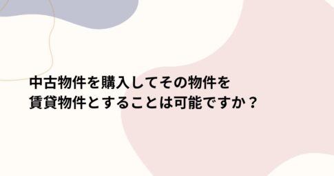 不動産はじめに 中古物件を購入してその物件を賃貸物件とすることは可能かについてご紹介します。 中古物件の購入を検討する際、その物件を賃貸物件として運用することができるのか気になる方も多いでしょう。 購入した物件を賃貸に回すこと...