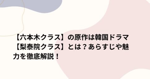 雑学はじめに 2022年に放送された日本ドラマ『六本木クラス』は、韓国で大ヒットしたドラマ『梨泰院クラス』を原作としたリメイク作品です。 韓国の人気Web漫画『梨泰院クラス』を基に制作された同ドラマは、不屈の精神で逆境を乗り...