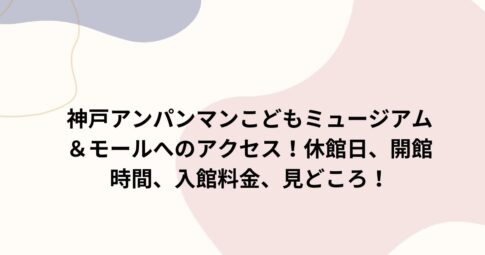 旅行はじめに 神戸アンパンマンこどもミュージアム&モールへのアクセスって、ちょっと気になりますよね。 実は、神戸アンパンマンこどもミュージアム&モールへのアクセスは、JR「神戸駅」から徒歩約8分。または地下鉄「ハーバーランド...