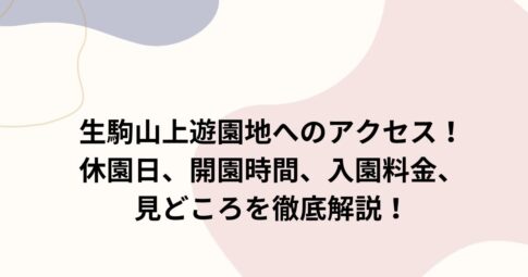 旅行はじめに 生駒山上遊園地へのアクセスって、ちょっと気になりますよね。 実は、生駒山上遊園地は、奈良県と大阪府の県境にある標高642mの山頂に位置する人気のレジャースポットです。電車とケーブルカーで簡単にアクセスできる上、...