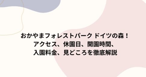 旅行はじめに おかやまフォレストパーク ドイツの森へのアクセスって、ちょっと気になりますよね。 実は、おかやまフォレストパーク ドイツの森へのアクセスは、車なら山陽自動車道・山陽ICから約30分、公共交通ならJR岡山駅から宇...