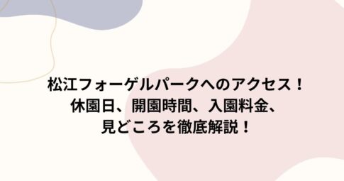 旅行はじめに 松江フォーゲルパークへのアクセスって、ちょっと気になりますよね。 実は、松江フォーゲルパークへのアクセスは、一畑電車「松江フォーゲルパーク駅」直結で徒歩すぐ、車ならJR松江駅から約25分、出雲空港から約25分で...