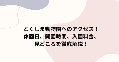 旅行はじめに とくしま動物園へのアクセスって、ちょっと気になりますよね。 実は、とくしま動物園へのアクセスは、公共交通ではJR徳島駅からバスで約25分、車なら徳島ICから約40分で、駐車場も600台完備と非常に便利です。 こ...