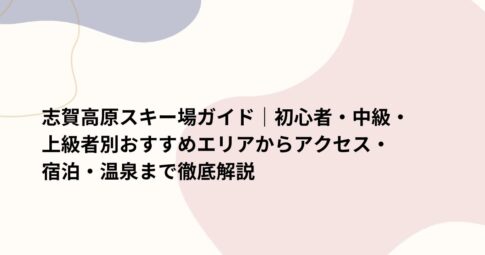 スポットはじめに 長野県の北東部に位置する志賀高原スキー場は、大小18ものスキー場が集まる日本最大級のスノーリゾートです。その広大さ、雪質の良さ、そしてロングシーズンが、国内外から多くのスキーヤー・スノーボーダーを魅了し続けてい...
