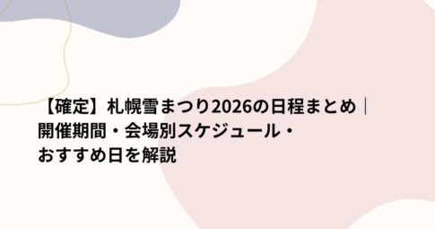 はじめに 冬の北海道を代表する一大イベント「さっぽろ雪まつり」。2026年の開催を楽しみにしている方も多いのではないでしょうか。 この記事では、2026年の開催日程や会場ごとのスケジュール、そしておすすめの訪問日について...