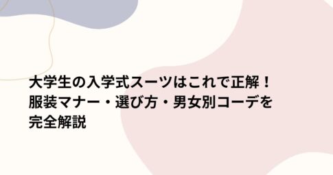 イベントはじめに 大学への合格、本当におめでとうございます!新しい生活への期待が膨らむ一方で、最初に悩むのが**「入学式の服装」**ですよね。 「みんな何を着ていくの?」「リクルートスーツでいいの?」「おしゃれしても大丈夫?」な...
