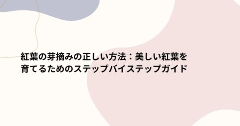 イントロダクション 紅葉(もみじ)は日本の美しい自然を代表する植物の一つです。 特に、紅葉の芽摘みはその成長と美しさに大きな影響を与えます。 この記事では、紅葉の芽摘みの正しい方法とその重要性について詳しく解説します。 ...