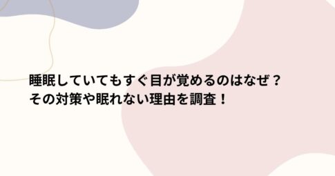 社会はじめに 睡眠していてもすぐ目が覚めるのはなぜか、その対策や眠れない理由についてご紹介します。「寝てもすぐに目が覚めてしまう」「途中で何度も起きてしまう」――このような悩みを抱える方は多いでしょう。十分に睡眠をとっている...