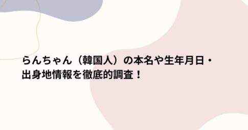 芸能はじめに SNSやYouTubeを中心に注目を集める韓国人インフルエンサー・らんちゃん。その明るいキャラクターや美しいルックスで人気ですが、本名や生年月日、そして出身地などの詳しいプロフィールについては謎が多い存在です。...
