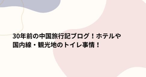 体験記はじめに 30年前の中国を訪れた旅の思い出を振り返ると、さまざまなエピソードが蘇ります。当時の中国は、現在とは大きく異なる風景や文化が広がっており、その変化を感じることができます。特にホテルや国内線、観光地のトイレ事情は...