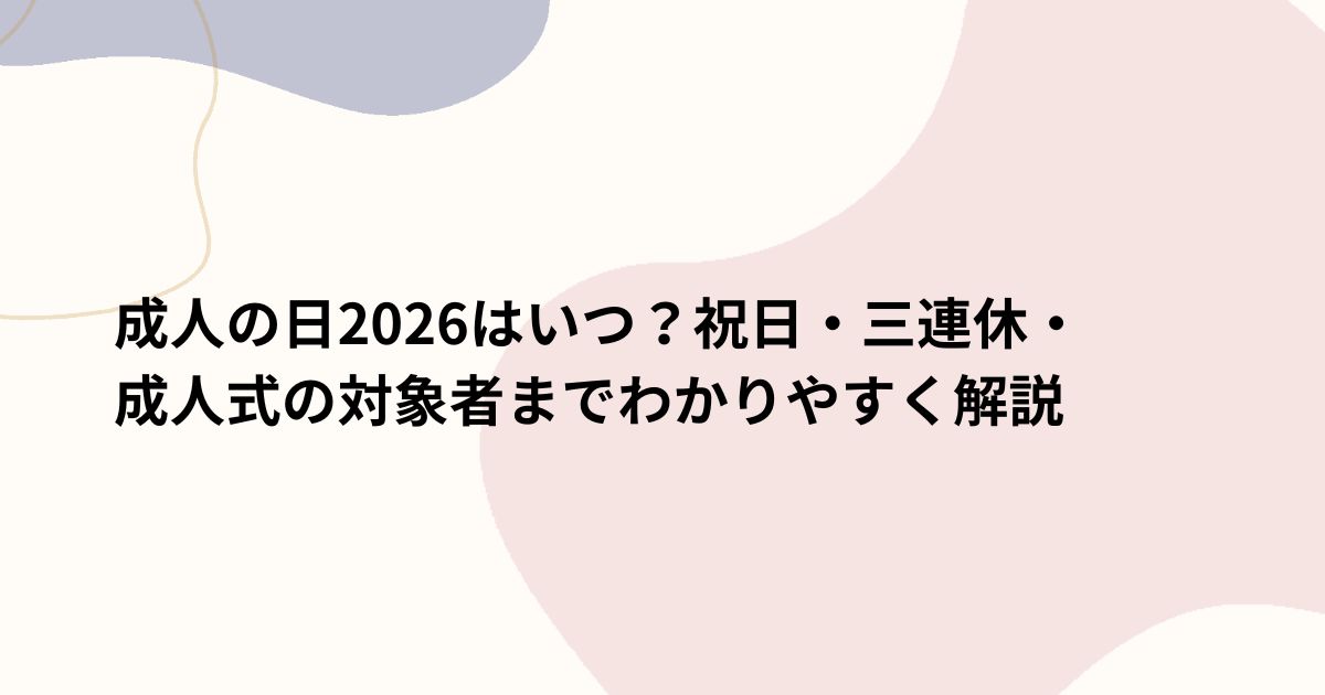 成人の日は、新成人を祝う大切な祝日であり、多くの若者にとって人生の節目となる日です。2026年の成人の日がいつなのか、三連休になるのか、また成人式の対象者は誰なのか、気になっている方も多いのではないでしょうか。