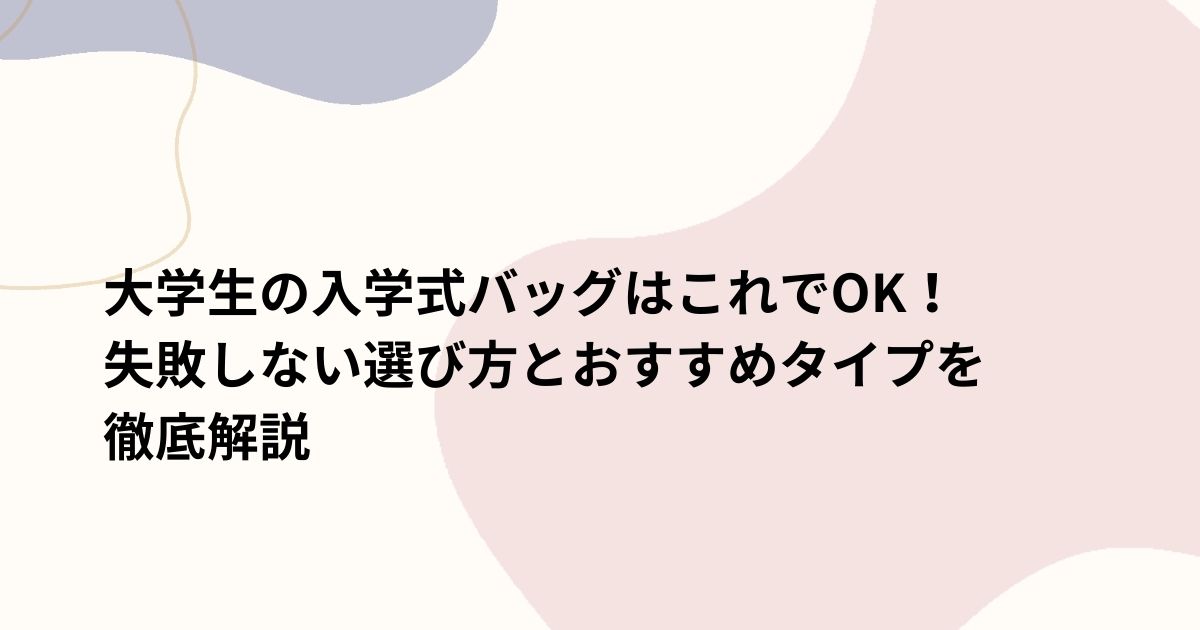 大学の入学式を控え、スーツは用意したけれど「バッグは何を持っていけばいいの?」と迷っている方は多いはずです。高校までとは違い、自由度が高まるからこそ、周囲から浮かないか不安になりますよね。
