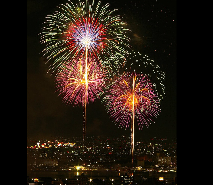 第3位:大曲の花火大会(秋田) 花火競技大会として開催され、全国の花火師たちが技術を競い合います。芸術性の高い花火を間近で鑑賞できる有料席は、花火愛好家には必見です。