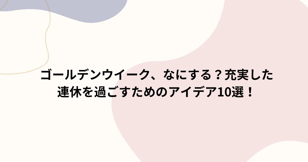 「ゴールデンウイーク、なにする?」と迷っているあなたへ。連休が近づくと、予定が決まっていないことに焦りを感じてしまう人も多いのでは?今年は最大10連休となる可能性もあるゴールデンウイーク。