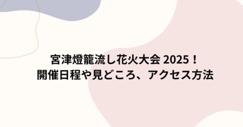本記事では、開催日程、見どころ、アクセス方法、宿泊情報などを詳しくご紹介します。