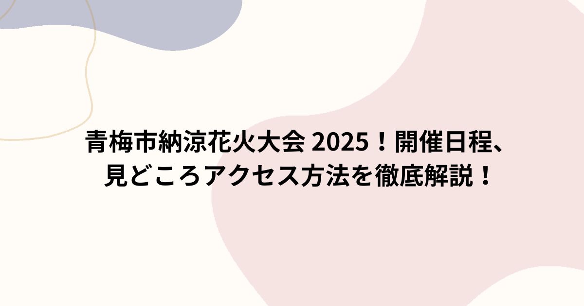 大玉花火や音楽とシンクロする演出が見どころ。アクセスはJR青梅駅から徒歩約15分で、穴場スポットや有料席も活用可能。