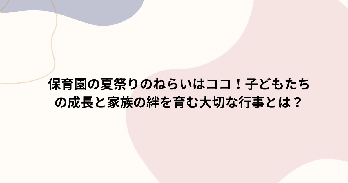 この記事では、保育園の夏祭りがもつ「ねらい」について詳しく解説し、その意義や効果、準備のポイントまでをまとめました。