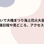 - さかいで大橋まつり 海上花火大会2025!開催日程や見どころ、アクセス方法を徹底解説!