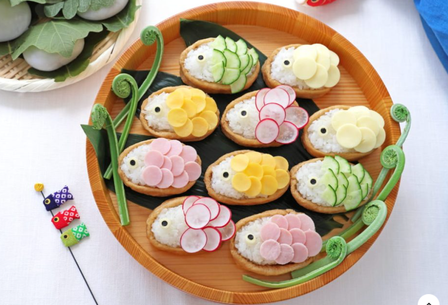 見た目も楽しいデコ巻き寿司は、お祝いの日にぴったり。酢飯をベースに、卵焼き、かんぴょう、きゅうり、ツナマヨなどを使って、鯉のぼりの形に巻きます。子どもと一緒に作れば、調理の時間もイベントの一部に。