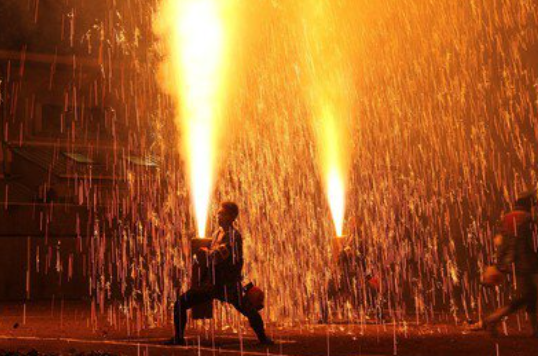 地元の男衆が自ら手に持って火花を噴き出す様は、まさに圧巻の一言。