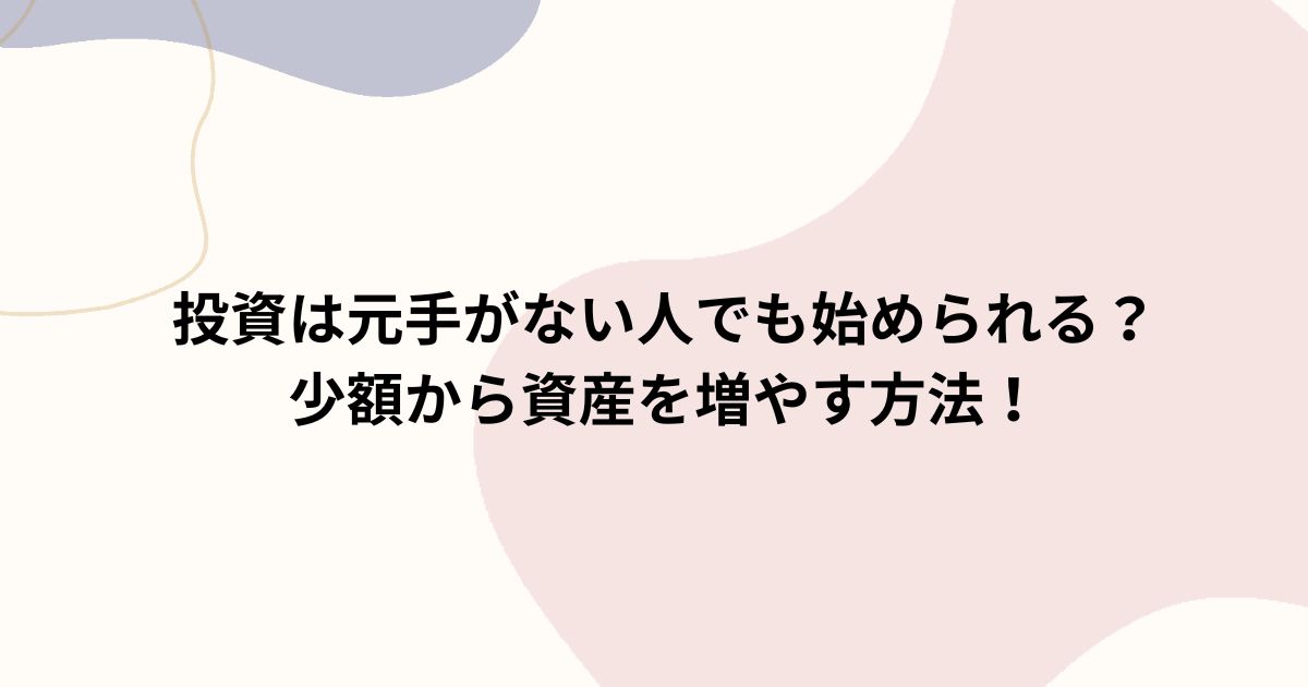 投資は元手がない人でも始められるのか?少額から資産を増やす方法!