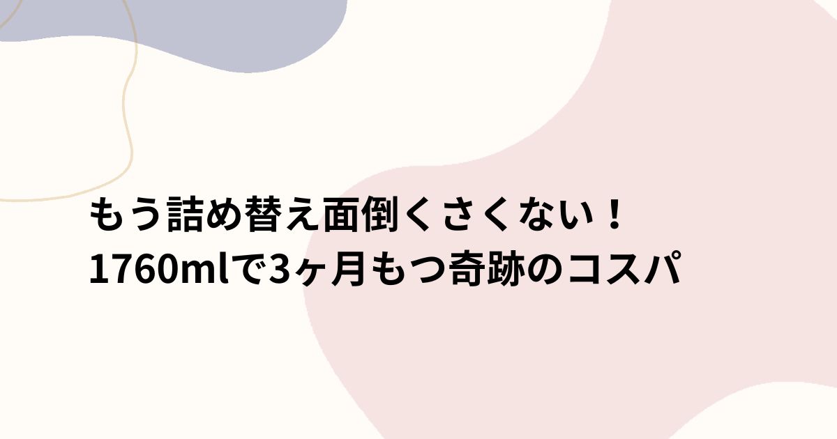 最後に、コスパの良さを実感できたこと。1760mlで868円なので、1mlあたり約0.5円。通常サイズの詰め替え用と比較すると、明らかにお得なんです!年間で考えると数百円の節約になります。