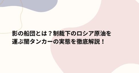 社会はじめに バルト海で発生した海底ケーブル損傷事故で、「影の船団(シャドーフリート)」という言葉が注目を集めています。 この記事では、国際社会の制裁をくぐり抜けて運航を続ける「影の船団」の実態と、それがもたらす問題について...