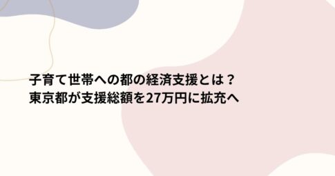 子育て世帯への都の経済支援とは?東京都が支援総額を27万円に拡充へ