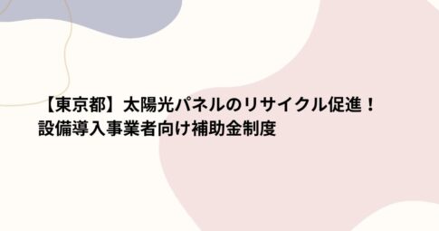 【東京都】太陽光パネルのリサイクル促進!設備導入事業者向け補助金制度