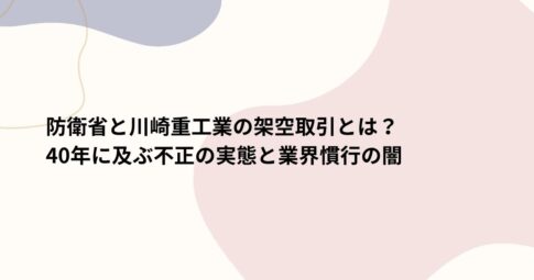 防衛省と川崎重工業の架空取引とは?40年に及ぶ不正の実態と業界慣行の闇