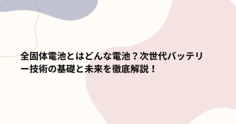 社会はじめに 次世代のエネルギー技術として注目を集める「全固体電池」。 電気自動車(EV)やスマートデバイスなどの進化を牽引するこの技術は、どのような仕組みで動き、なぜこれほど注目されているのでしょうか。 本記事では、全固体...