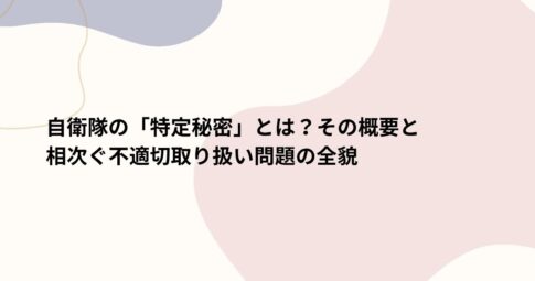 社会はじめに 自衛隊が扱う「特定秘密」に関して、不適切な取り扱いが相次いで発覚し、数百人規模の隊員が処分の対象となる可能性が報じられています。 本記事では、「特定秘密」とは何か、その重要性や不適切な管理の問題点について解説し...