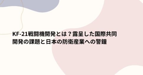 社会はじめに 現在、国際共同開発は大型防衛装備品の開発において重要な手法となりつつあります。 しかし、この協力体制は経済的・技術的な保証に加え、強い信頼と決意が必要です。 今回、韓国が計画したKF-21 戦闘機開発事例は、国...