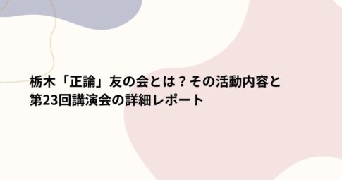 イベントはじめに 栃木「正論」友の会は、地域の保守思想や健全な政治を支援するための活動を行っている団体です。 この友の会は、保守系オピニオン誌「正論」の理念を共有するメンバーが集い、講演会や勉強会を通じて政治や社会問題への理解を...
