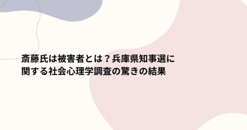 斎藤氏は被害者とは?兵庫県知事選に関する社会心理学調査の驚きの結果
