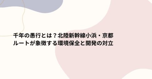 社会はじめに 北陸新幹線の小浜・京都ルート計画が大きな岐路に立たされています。 京都府内約1100か寺が加盟する京都仏教会が、この計画を「千年の愚行」と強く批判し、計画の再考を求める要望書を提出したのです。 なぜ、インフラ整...
