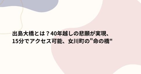 社会はじめに 離島と本土を結ぶ一本の橋。それは単なる交通インフラではなく、人々の命と暮らしを守る希望の架け橋でした。 宮城県女川町の出島で40年以上待ち望まれてきた出島大橋が、2024年12月19日についに開通。 かつては1...