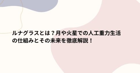 社会はじめに 宇宙空間での生活を実現するためには、地球の重力環境と同じ1Gの重力を人工的に再現する必要があります。 そのための革新的な施設構想が「ルナグラス」です。この記事では、ルナグラスの仕組みと、それが月や火星での生活に...