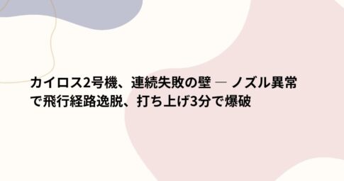 社会はじめに 日本の宇宙開発の新たな一歩として期待された民間企業スペースワンの小型ロケット「カイロス2号機」が、2024年12月18日、和歌山県串本町での打ち上げに失敗しました。 今回の失敗は今年3月の初号機に続く2度目とな...