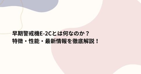 社会はじめに 早期警戒機E-2Cは、軍事作戦や防空システムにおいて重要な役割を果たす航空機です。 本記事では、その基本情報から特徴、性能、最新情報まで詳しく解説します。 早期警戒機E-2Cとは? 那覇基地に配備されている早期...