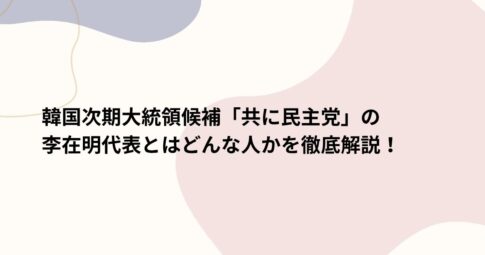 はじめに 韓国政治の中心にいる人物として注目される「共に民主党」の李在明(イ・ジェミョン)代表。 次期大統領候補と目される彼の経歴、政治姿勢、そして物議を醸すスキャンダルについて詳しく解説します。 李在明氏の経歴と背景 ...