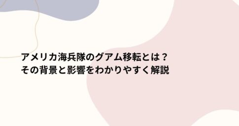 社会はじめに 2024年12月、アメリカ海兵隊は沖縄から米領グアムへの部隊移転を開始しました。 この移転計画は、地域の安定維持と基地負担の軽減を目的としており、長年の日米間の協議の成果です。 本記事では、アメリカ海兵隊のグア...