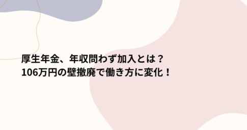 社会はじめに パートやアルバイトなどの短時間労働者にとって、「106万円の壁」という言葉は避けて通れないものでした。 しかし、厚生労働省の社会保障審議会は2026年10月から、この年収要件を撤廃する方針を決定しました。 本記...